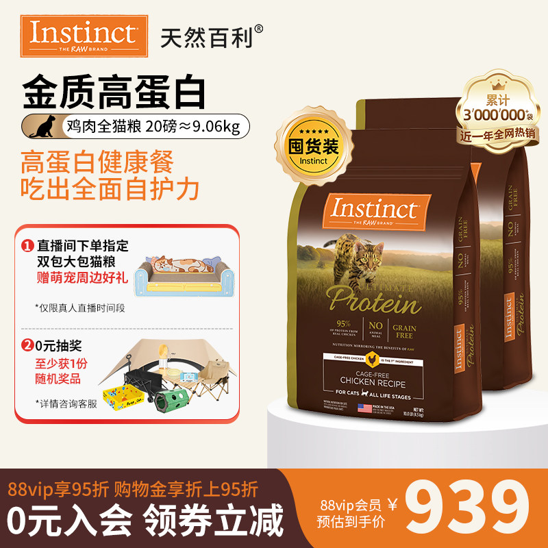 【囤货装】Instinct天然百利美国进口金质高蛋白鸡全猫粮20磅/9kg