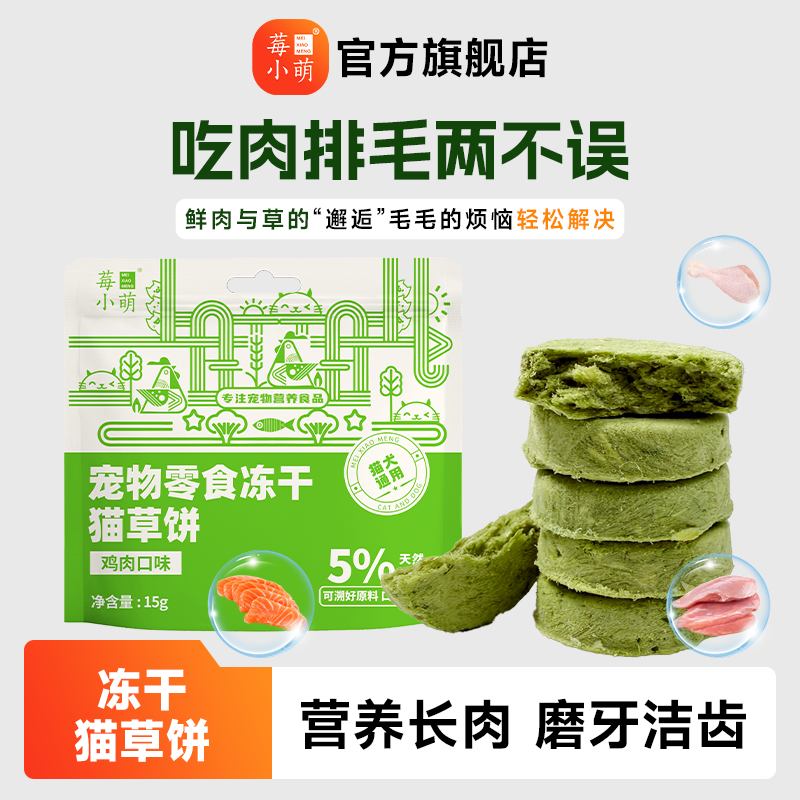 莓小萌冻干猫草饼鸡肉温和化毛排毛磨牙洁齿宠物零食猫犬通用营养