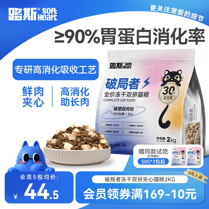路斯冻干猫粮鸡肉冻干肉松夹心无谷鲜肉成幼猫营养美味猫粮2kg
