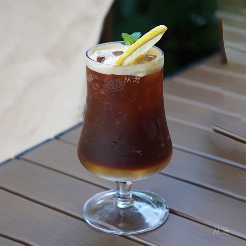 创意ins风冰美式咖啡杯高脚玻璃杯气泡水杯果汁杯冷饮杯鸡尾酒杯