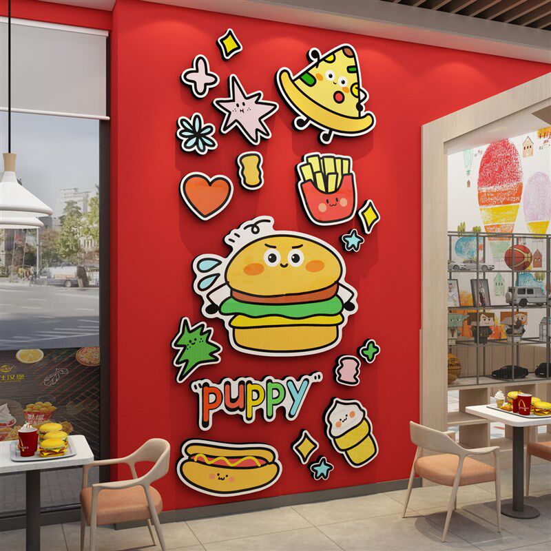 网红汉堡店墙面装饰布置贴纸壁画炸鸡厅背景玻璃用品海报广告创意