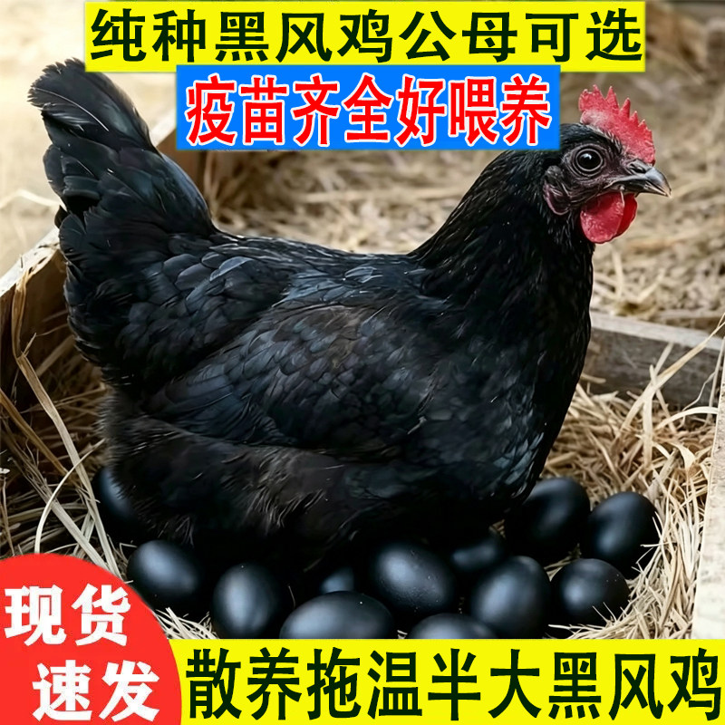 正宗一斤青年黑风鸡半大拖温黑风鸡宠物鸡活苗黑壳蛋鸡