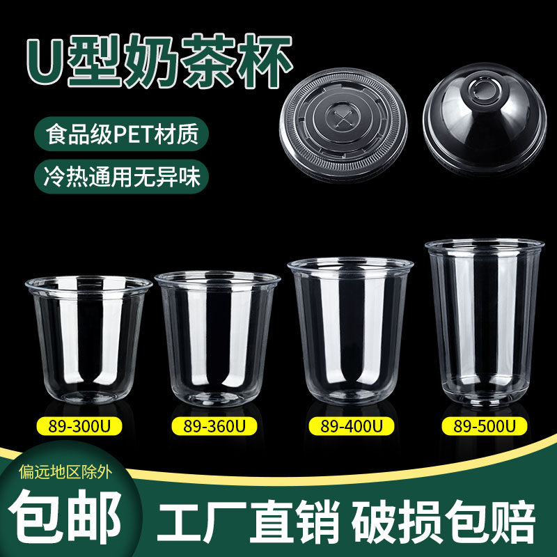 一次性U型咖啡杯带盖PET塑料奶茶杯商用高透调酒杯鸡尾酒冷饮杯子