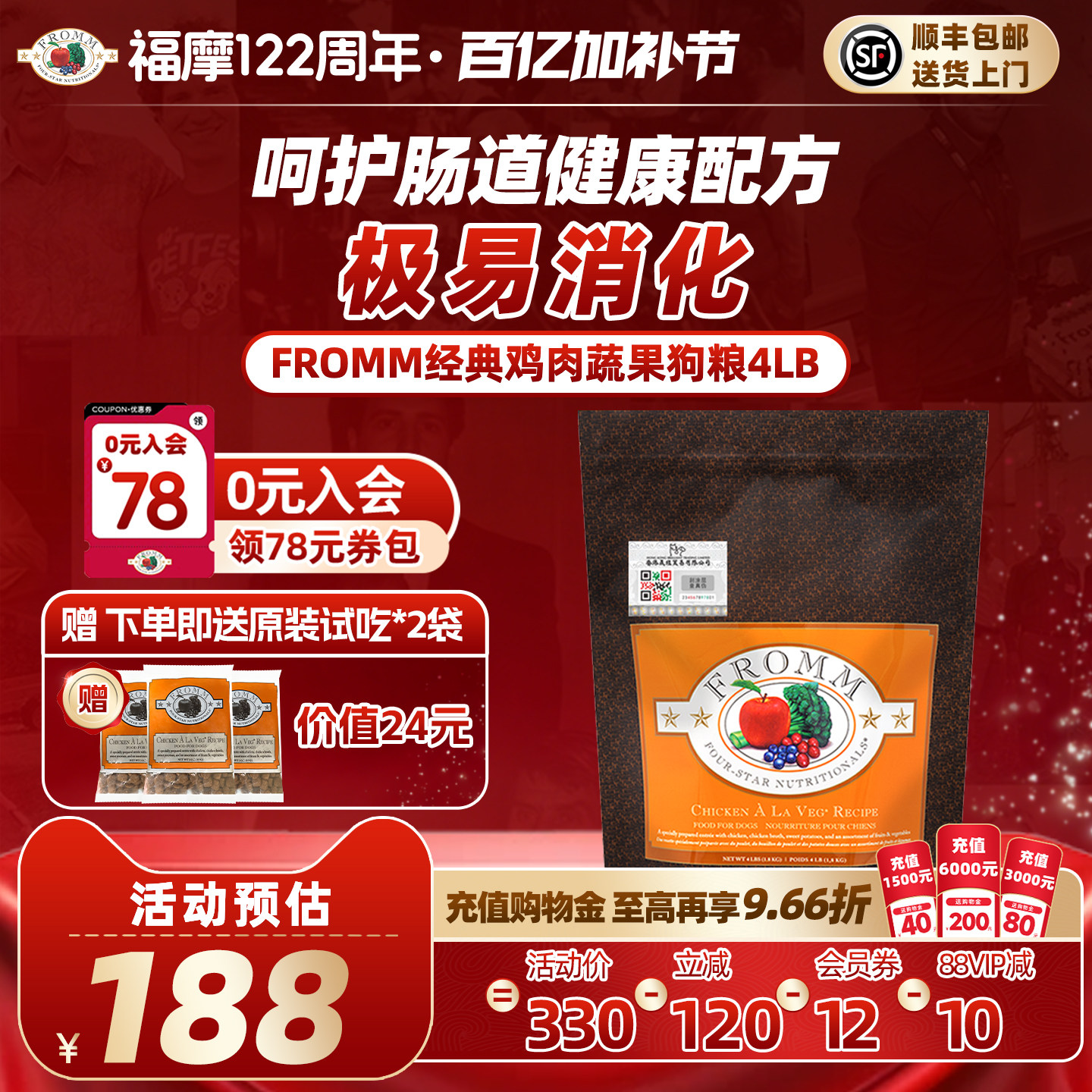 【官旗店】福摩FROMM经典鸡肉鱼肉蔬果助力成长成犬幼犬狗粮1.8KG