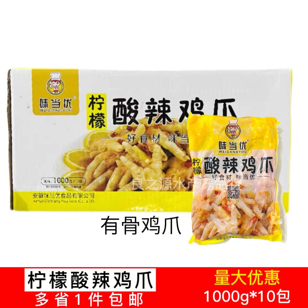 味当优酸辣鸡爪整箱1kg*10袋商用柠檬凤爪去大骨泡椒脱骨开袋零食