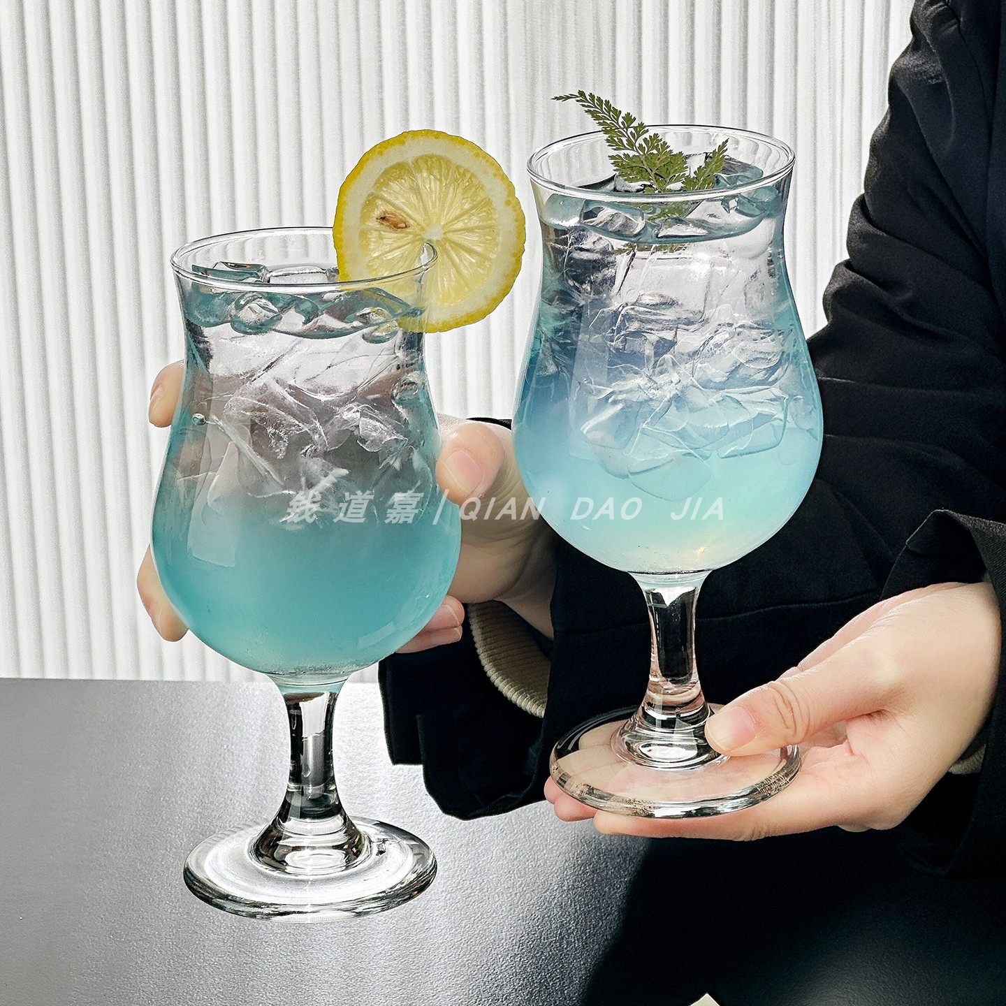 ins竖纹高脚杯玻璃杯鸡尾酒杯果汁杯特调饮料杯酒吧冷饮气泡酒杯
