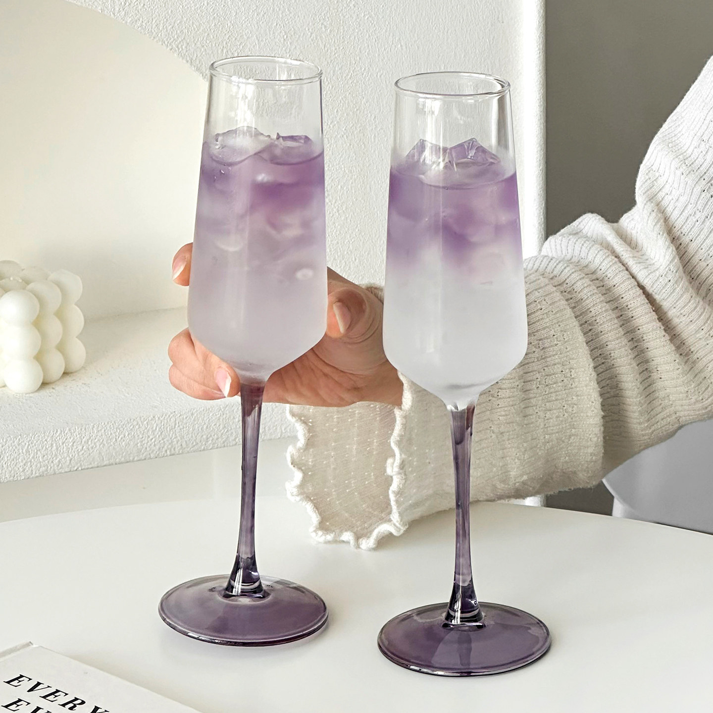紫色高脚玻璃杯家用创意高颜值设计感女生微醺香槟杯调酒鸡尾酒杯