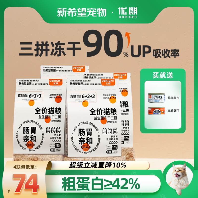 优朗新希望猫粮三拼鸡肉冻干鲜肉成猫幼猫粮高蛋白肠胃亲和1.5kg