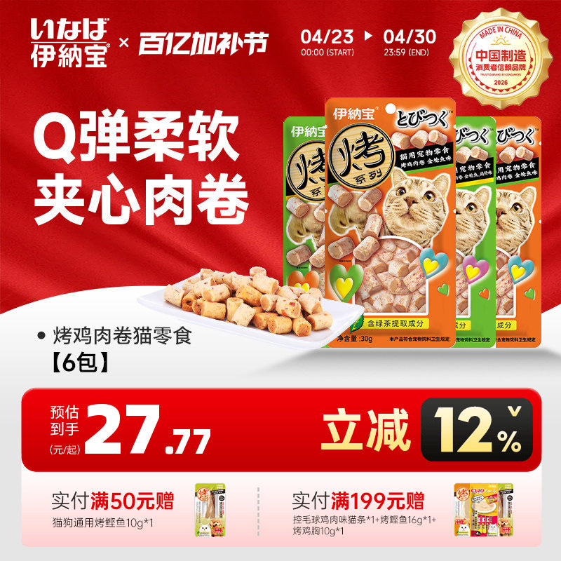 伊纳宝鸡肉卷猫零食小鸡肉冻干营养ciao肉干肉粒包猫咪零食猫饼干