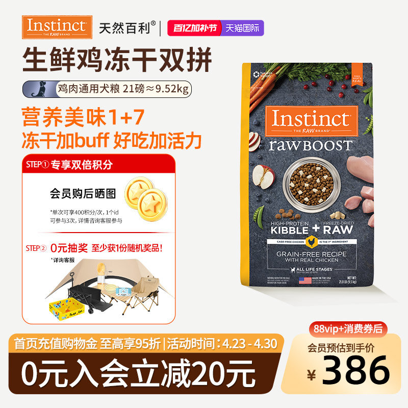 【临期】Instinct天然百利狗粮冻干鸡肉犬粮21磅 效期26年10月