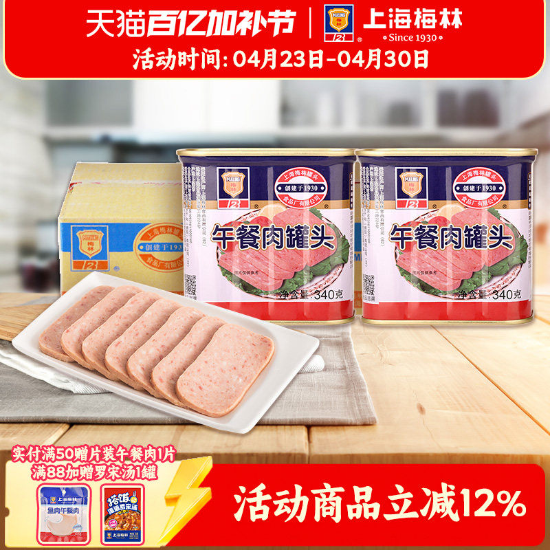 上海梅林午餐肉罐头340gx24 批发家庭储备应急储备食品不含鸡肉