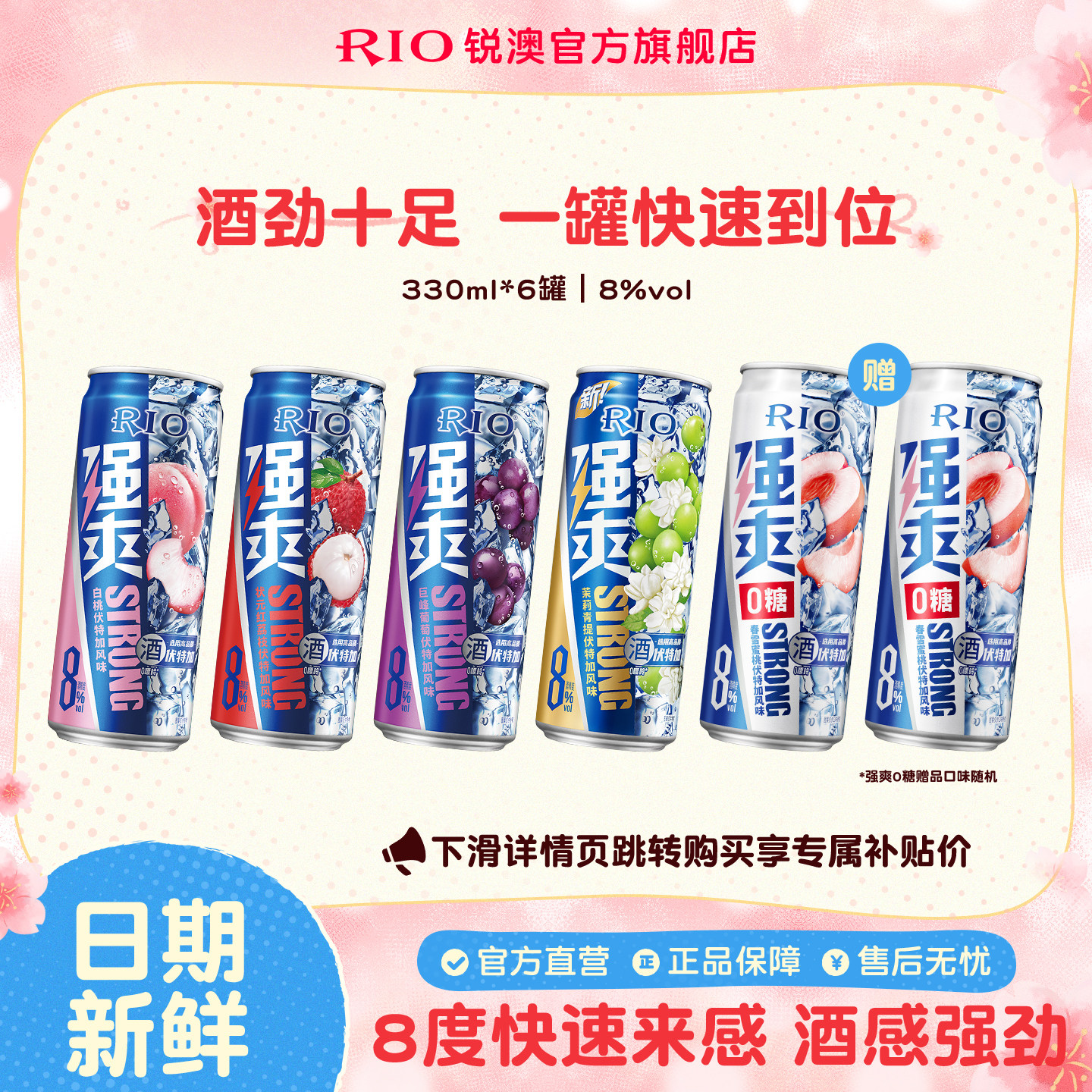 RIO锐澳预调鸡尾酒8度强爽气泡酒330ml*6罐低度果酒伏特加不信邪