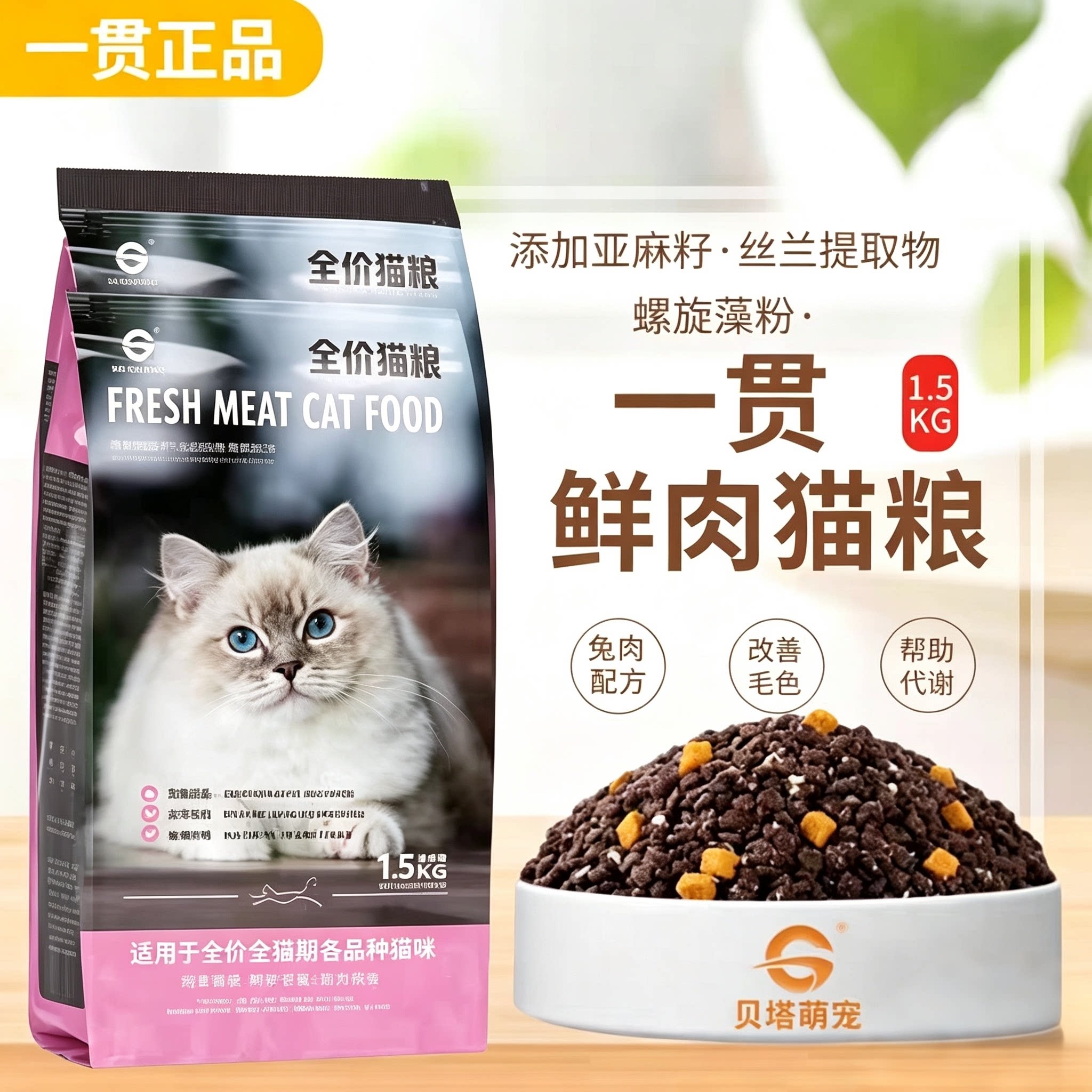 一贯双拼蛋黄鸡肉猫粮试吃幼猫成猫全价通用型3斤装干粮酶解鲜肉