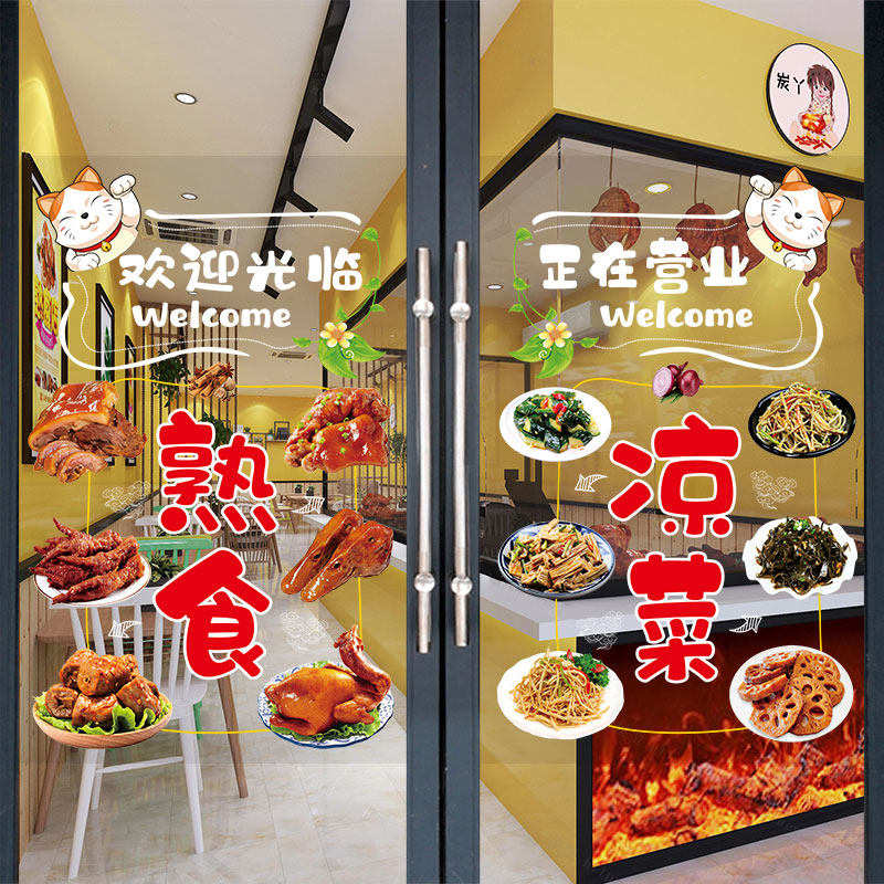 卤味熟食店广告贴纸凉拌菜橱窗海报烤鸭鸡爪卤菜店玻璃门装饰贴画