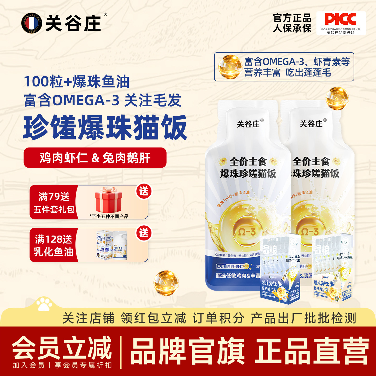 关谷庄珍馐爆珠奶包猫饭主食湿粮包全价鸡兔鱼肉零食猫条补水营养