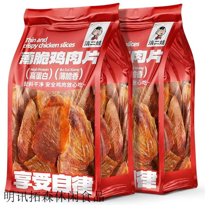 滇二娃薄脆鸡肉干鸡胸肉片高蛋白减低肥解馋休闲零食小吃 2大包薄脆鸡肉片(麻辣1+五香1)