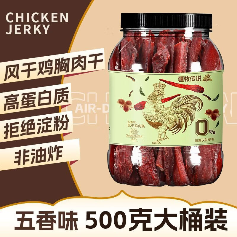 孙灿烂新品鸡胸肉风干干条鸡肉健身即食高蛋白解馋耐嚼麻辣罐装零食量大 鸡胸肉干五香味超大罐*1斤 疆牧传说超大罐