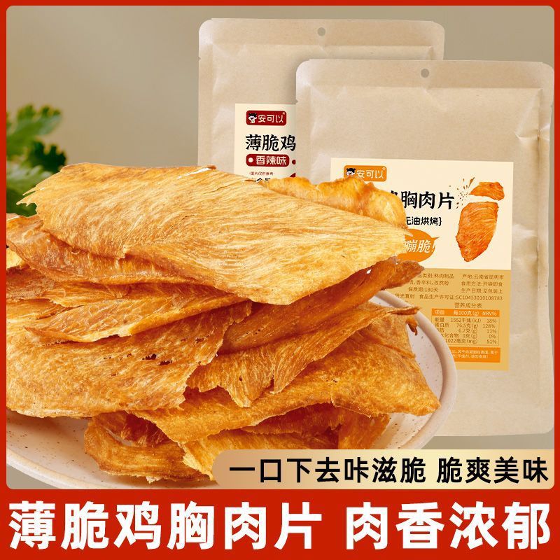 比比赞高蛋鸡胸肉脆即食低健身0餐解馋鸡肉干休闲小零食品 配料干净高蛋鸡胸肉脆孜然味80g*1罐