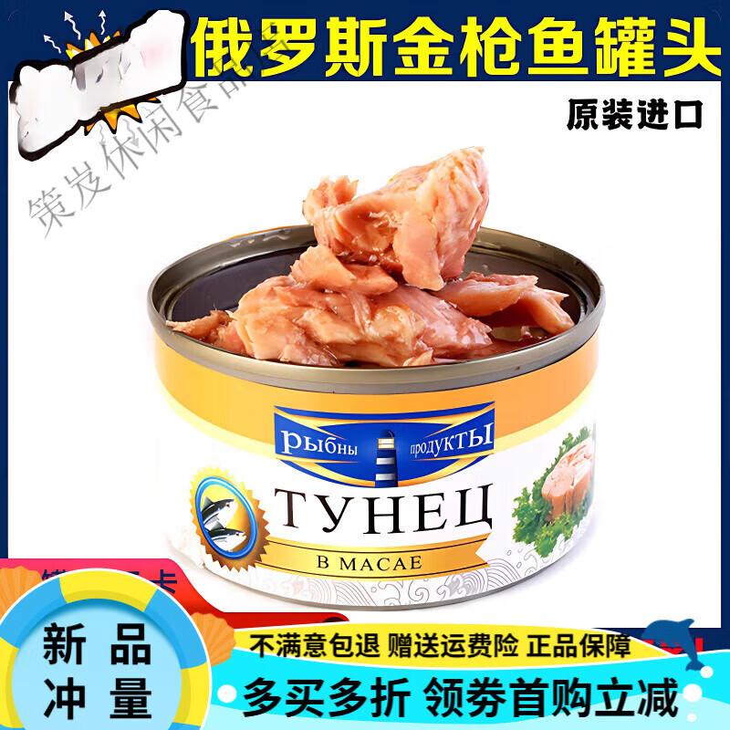 梦信俄罗斯金枪鱼罐头185克 深海鱼野餐开罐即食零食拉环罐 1罐粉罐金枪鱼罐头(大块肉(24