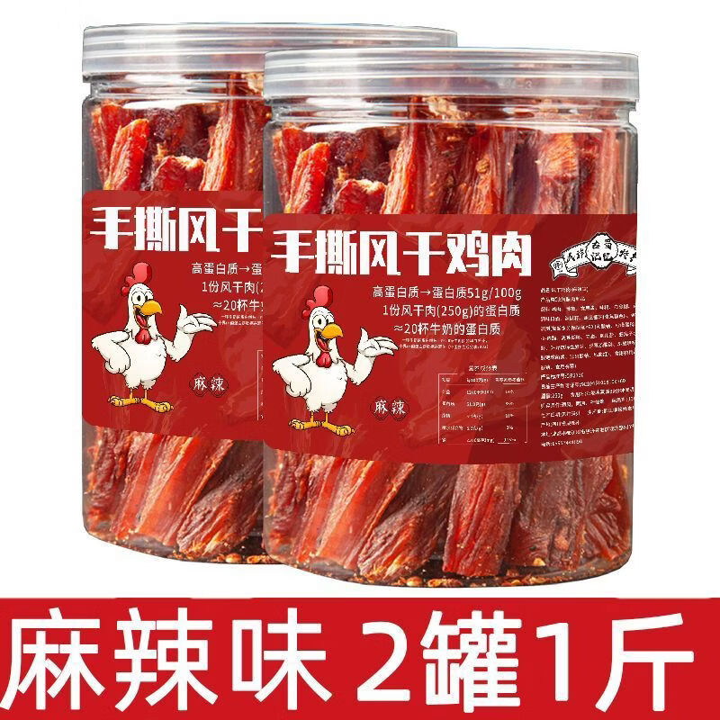 金陵记忆新货手撕鸡胸肉干风干鸡肉干孕妇孕期无添加食高蛋健身同学香辣 1斤罐装麻辣囗味两罐