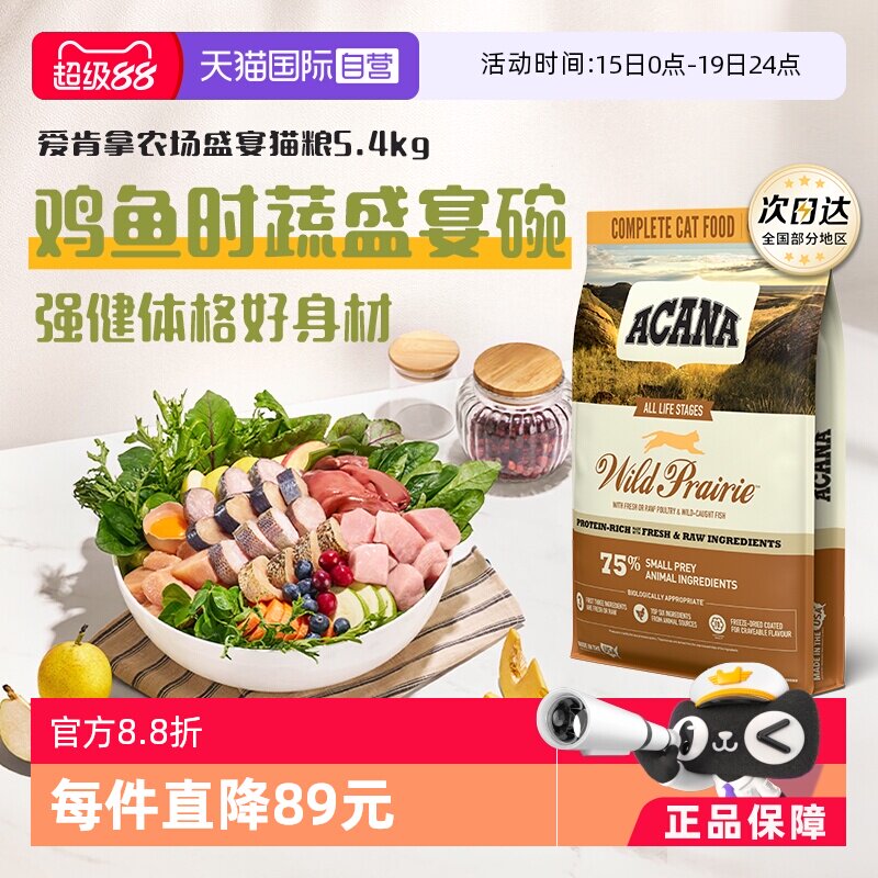 【自营】ACANA/爱肯拿猫粮农场牧场盛宴5.4kg无谷鸡肉增肌发腮