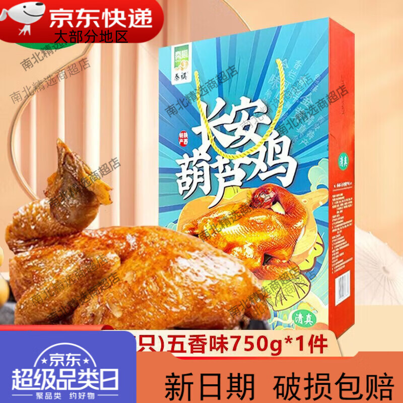 秦祺礼盒西安特产清真葫芦鸡整只装五香麻辣鸡肉速食陕西美食小吃 礼盒装750g五香味*1盒-整只