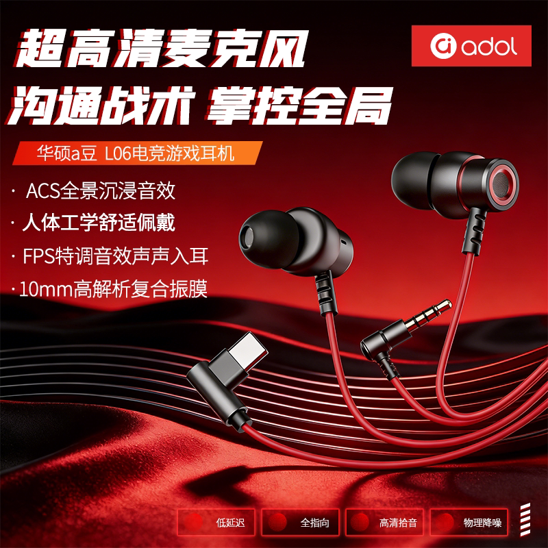 华硕a豆有线耳机入耳式电竞游戏吃鸡听声辨位降噪高音质低延迟L06