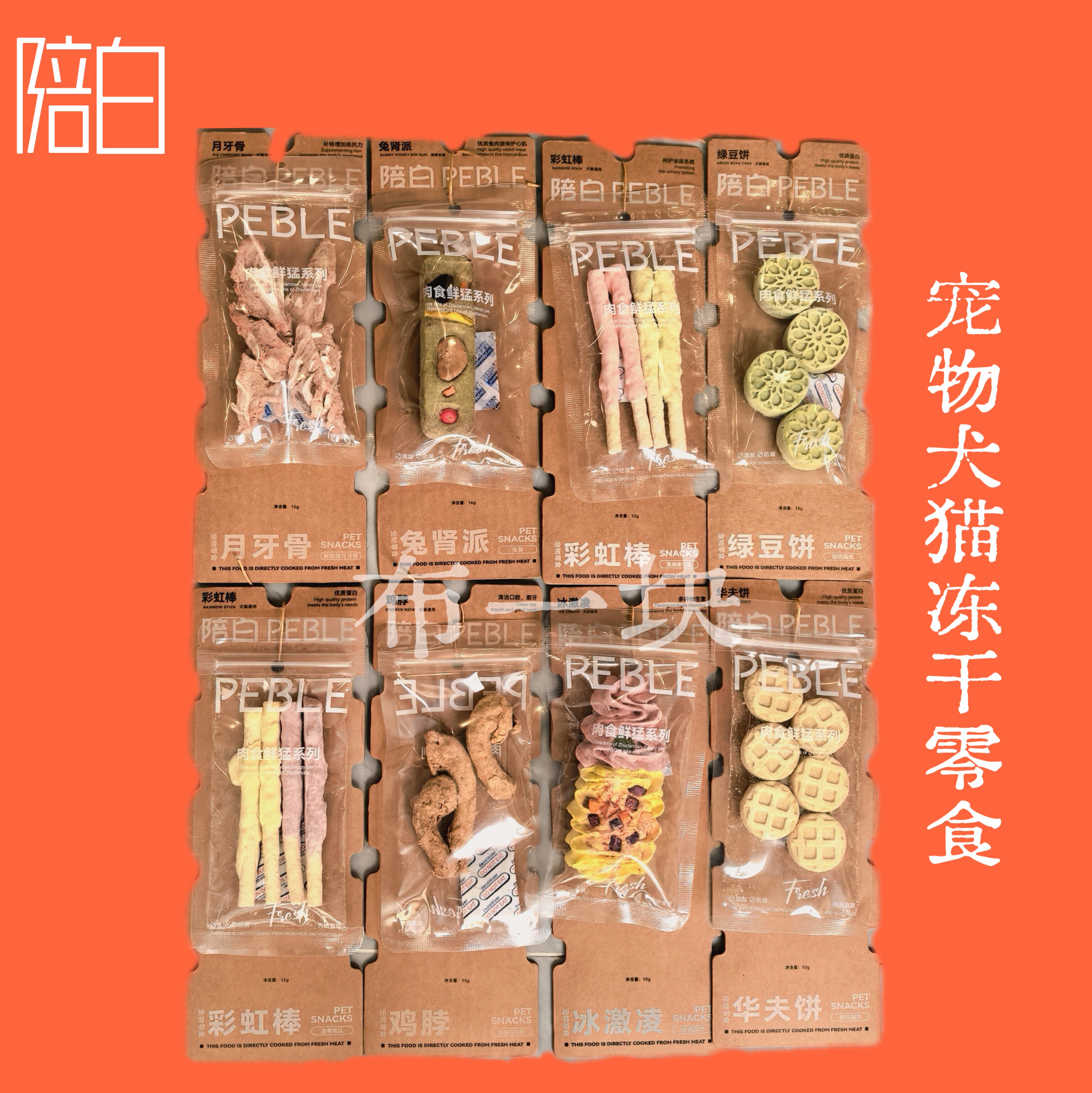 陪白冻干宠物零食犬猫通用月牙骨猪蛋蛋鸡脖果蔬草莓兔肾磨牙营养