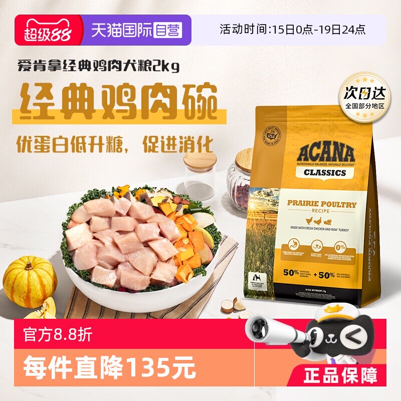 【自营】ACANA/爱肯拿草原经典鸡肉配方狗粮2kg优质蛋白临期26-9
