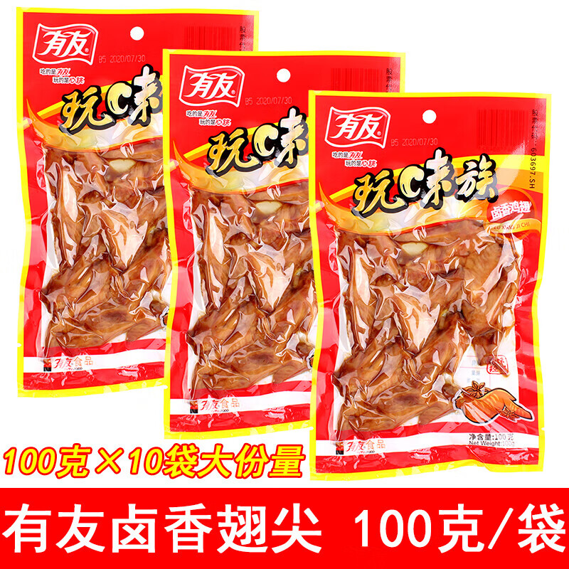 有友卤香鸡翅100g*10袋玩味族不辣火鸡翅鸡尖翅尖卤味鸡肉零食 100g*1袋 100g