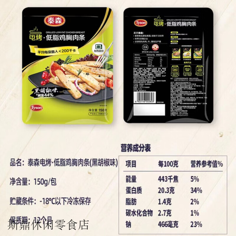 梦信(Tyson)电烤鸡胸肉轻食鸡肉零食加热即食包高蛋白代餐 4种口味各 150g/袋 2袋*1瓶