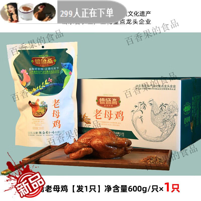 老母鸡整只熟食正宗德州山东脱骨扒鸡烧鸡土笨鸡即食正品保障 德盛斋老母鸡一只品尝600g只x1