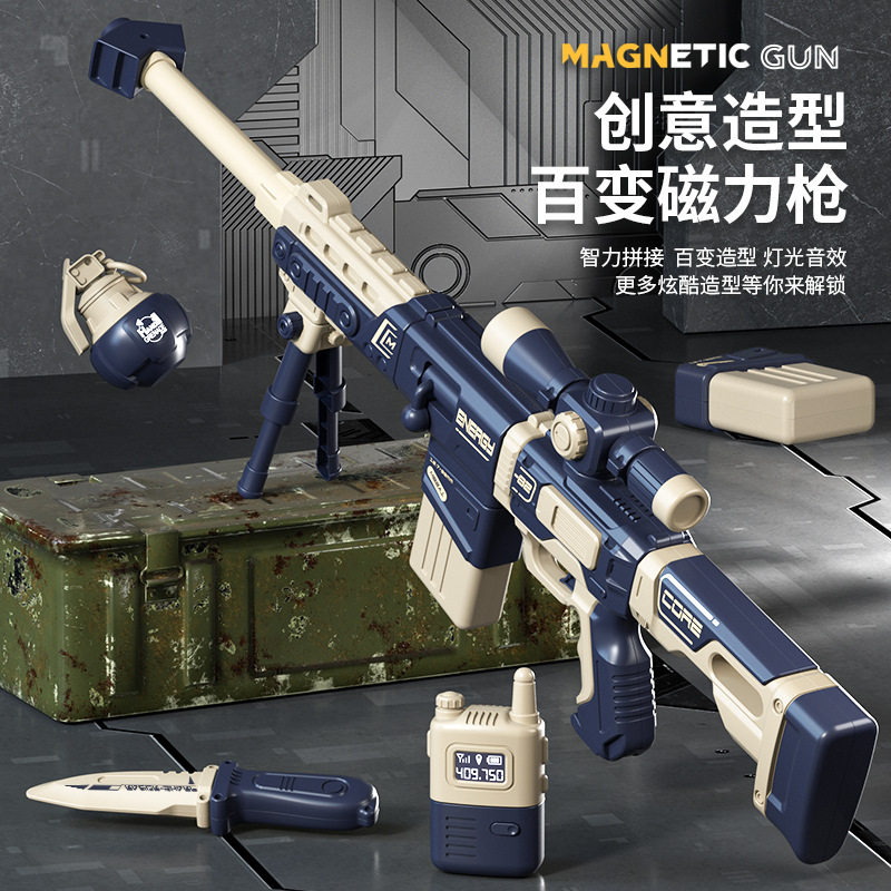 3-6岁DIY拼装男孩礼盒礼物益智百变磁力枪仿真电动声光拼装吃鸡枪