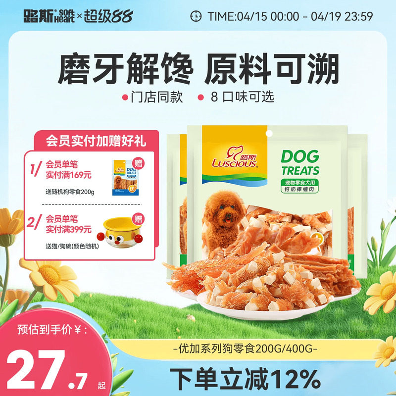 路斯优加狗狗宠物零食磨牙棒鸡胸肉干泰迪成幼犬训练鸡肉软丝400g