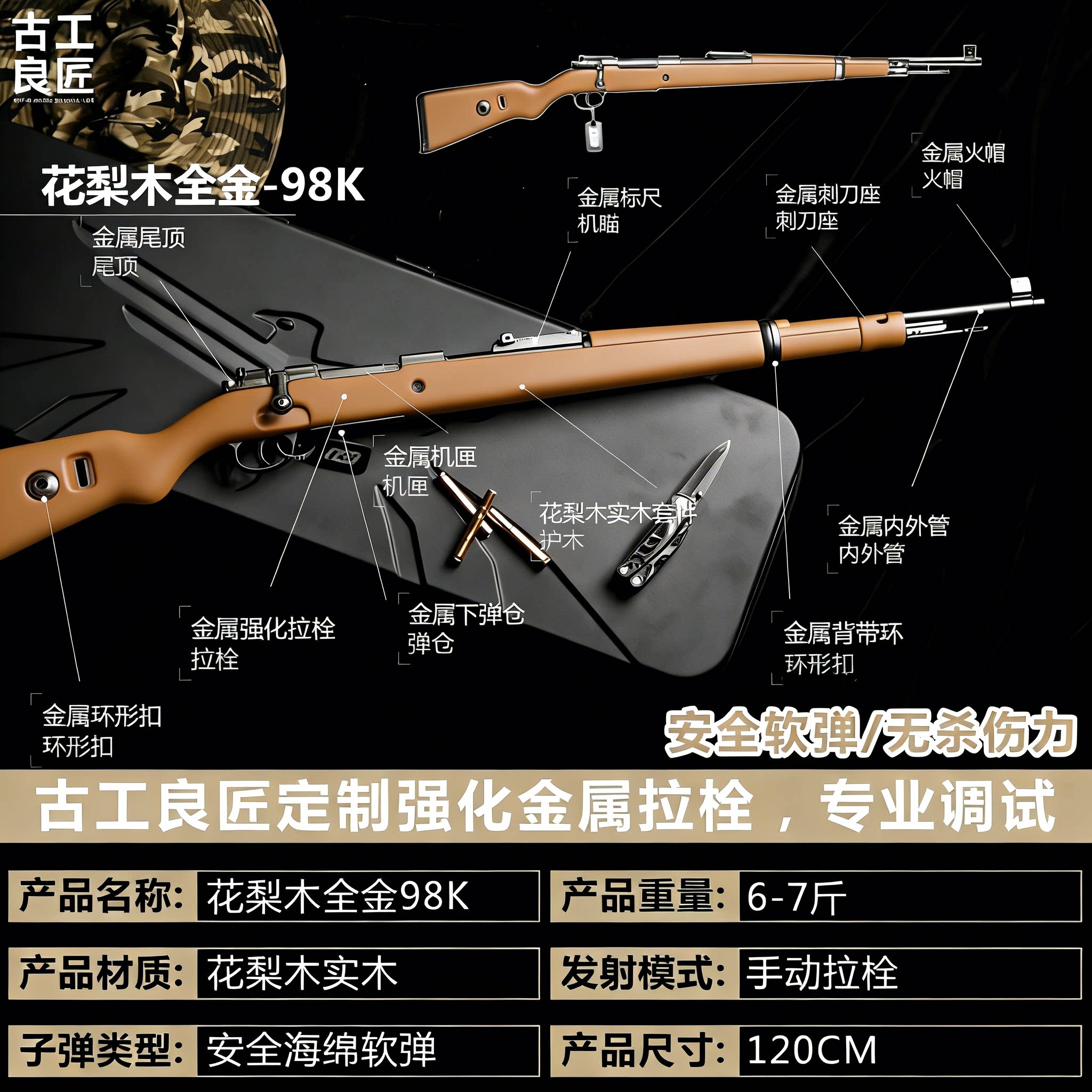 98K花梨木钨钢实木全金属 成年人合法软弹长款发射器吃鸡玩具模型