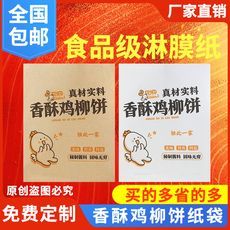 鸡柳烧饼防油纸袋香酥鸡柳饼打包袋商用鸡柳饼专用牛皮纸一次性袋