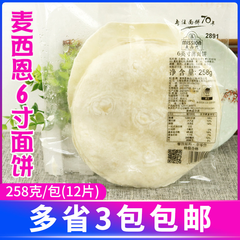 麦西恩6英寸薄面饼258g12片装墨西哥鸡肉卷饼皮速食早餐手抓饼用