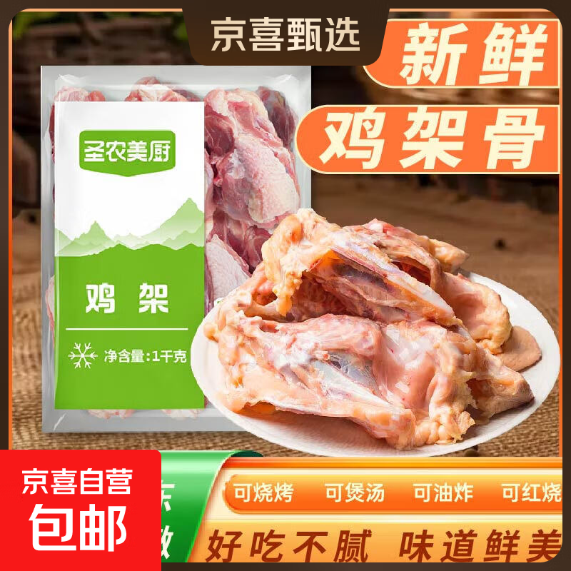 圣农美厨鸡架冷冻生鸡架去头去脖烧烤孜然鸡架高汤煲汤鸡骨架生鲜 圣农美厨鸡架4斤(1Kg*2袋)