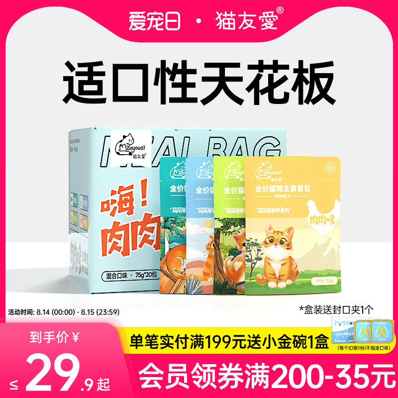 猫友爱全价猫咪补水猫湿粮大肉包鸽子鸡肉兔肉主食罐头75克X20包