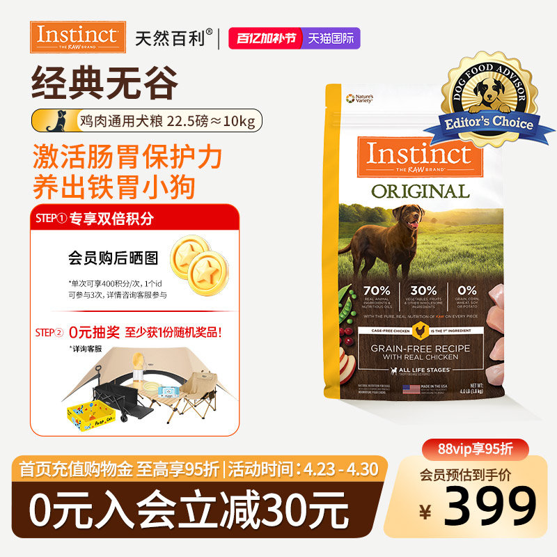 [临期]Instinct天然百利狗粮无谷鸡狗粮全犬粮22.5磅效期26年9月
