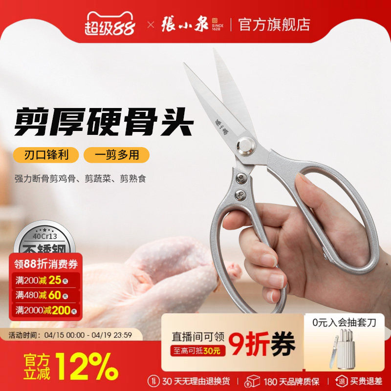 张小泉厨房剪刀锋利强力鸡骨剪全不锈钢剪鸡鸭鹅骨头专用厨房剪子