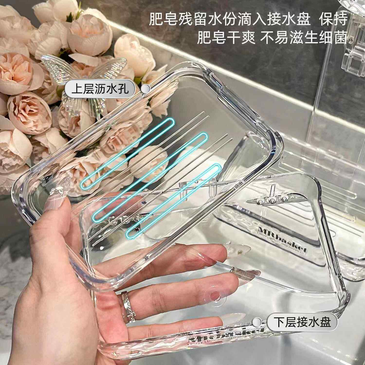 吸盘肥皂盒壁挂式免打墙上沥水层香皂盒