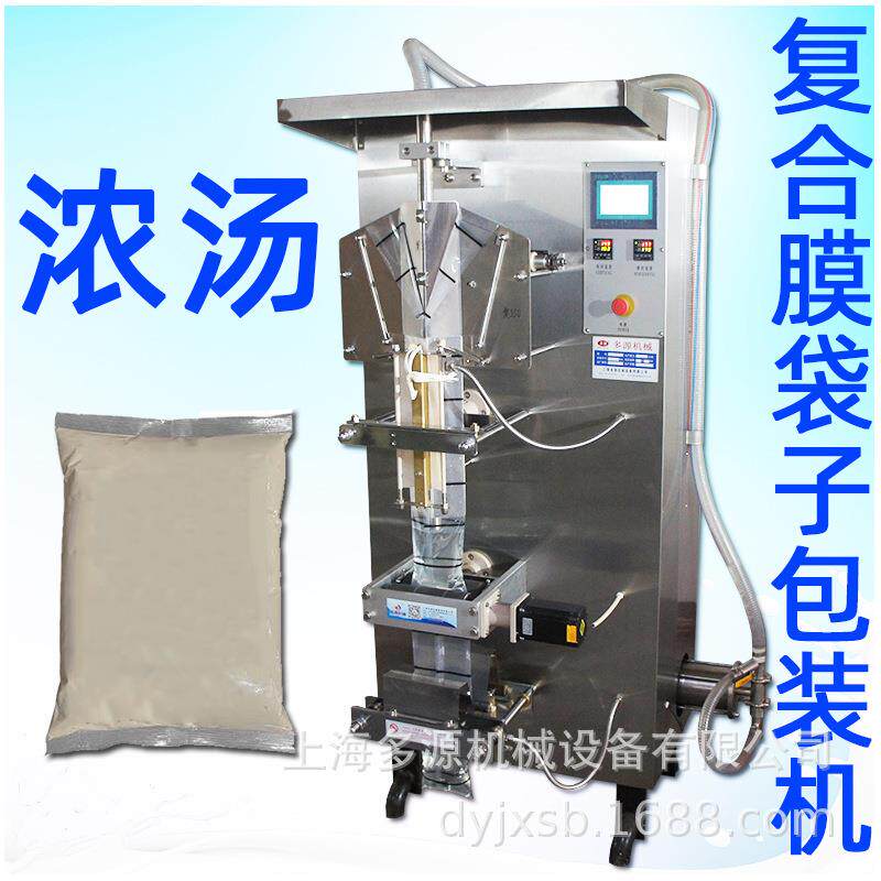 液体汤料灌装封口机,高浓汤宝制袋分装,鸡筒骨头汤塑料袋装包装机