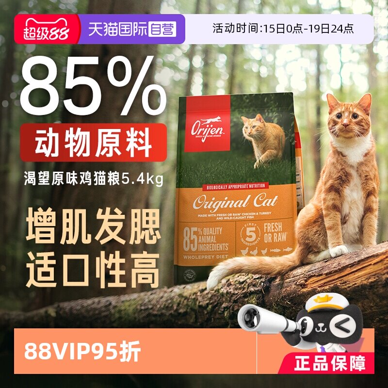 【自营】Orijen/渴望原味鸡肉猫粮进口六种鱼宠粮5.4kg11.4kg临期