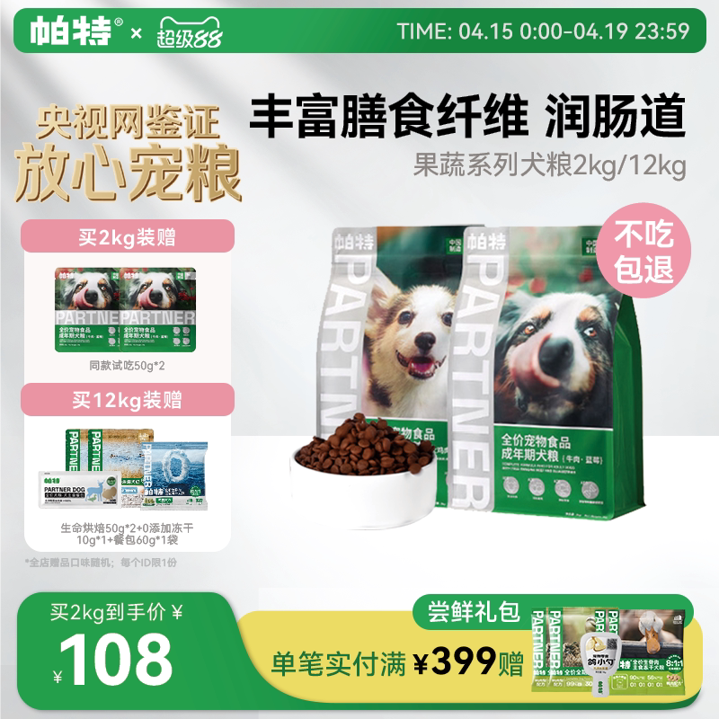 帕特旗舰店果蔬犬粮大型犬成幼犬通用小型犬蓝莓牛肉火鸡全价狗粮
