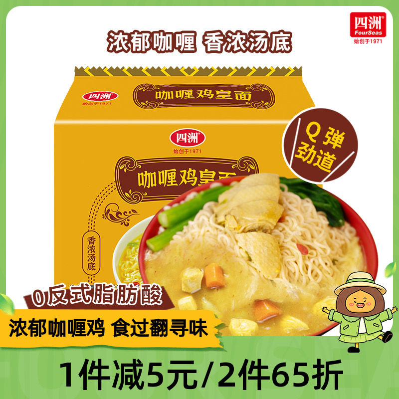 四洲泡面咖喱鸡皇面免煮夜宵速食食品充饥鸡汤面袋装方便面4连包