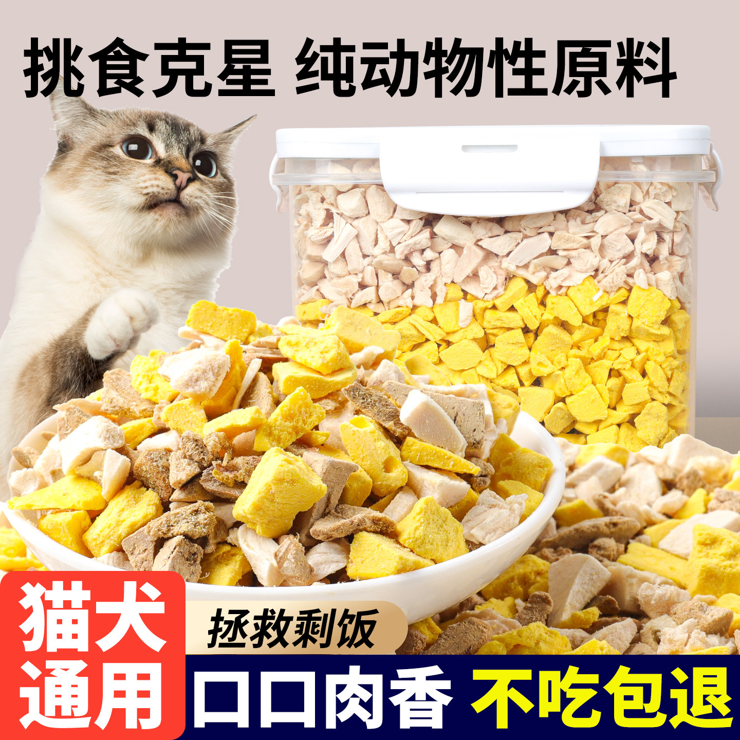 冻干鸡肉碎边角料三拼碎猫零食拌猫粮鸡胸肉蛋黄鸭肝猫咪宠物零食