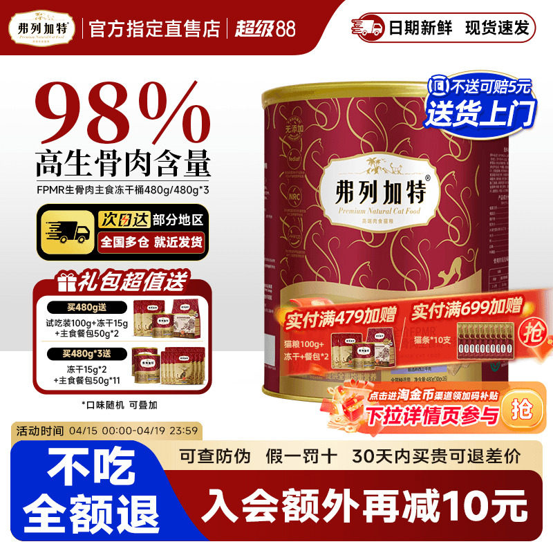 弗列加特主食冻干鲜肉猫粮桶装生骨肉鸡肉鲜肉无谷成幼猫粮