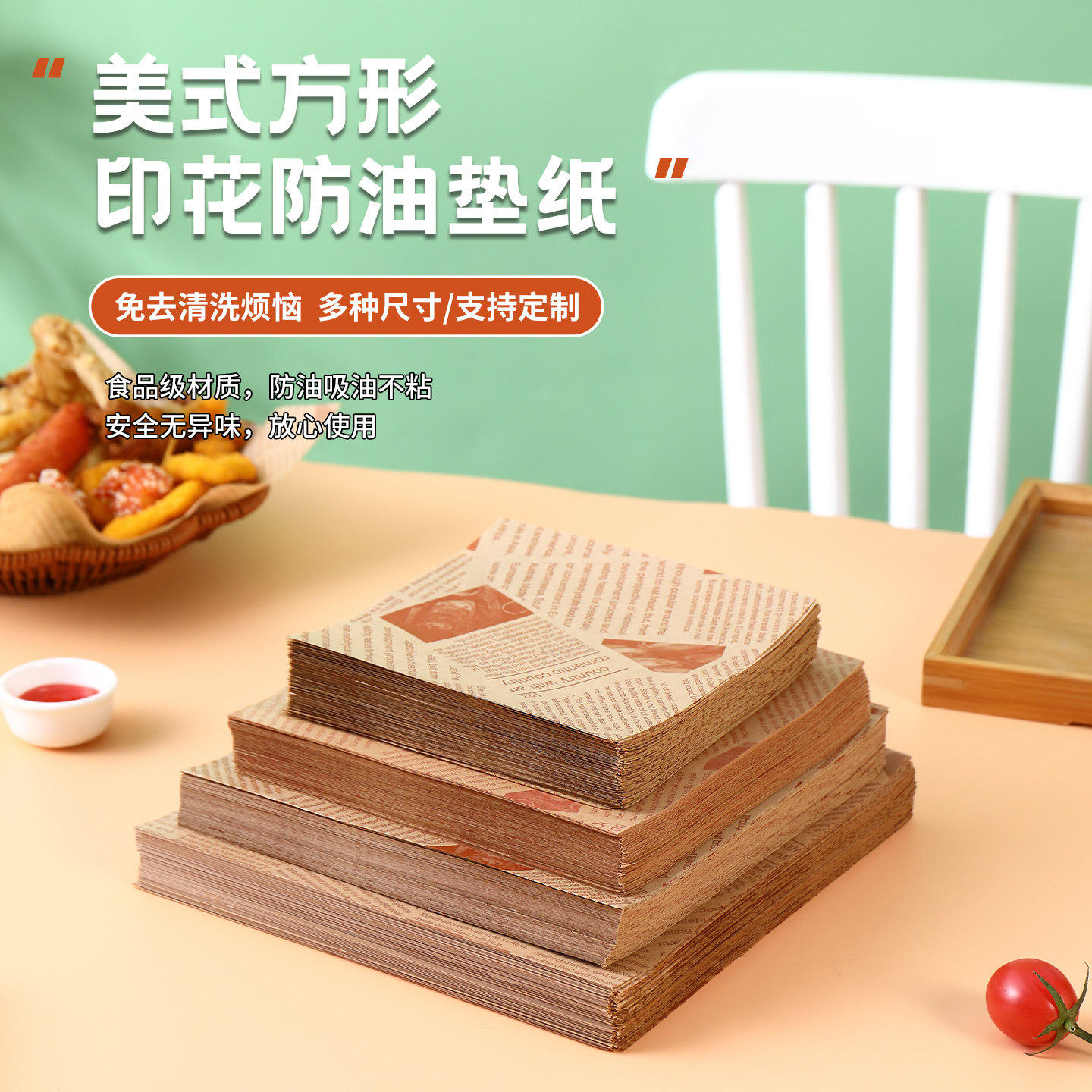 美式防油纸垫纸英文报纸油炸小吃隔油纸面包托盘烘焙炸鸡吸油垫纸