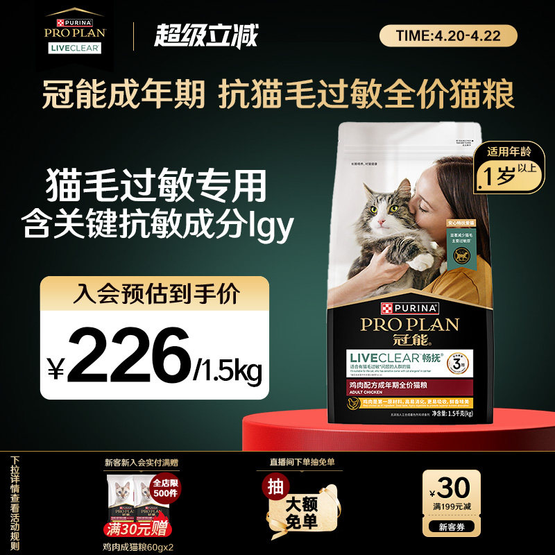 冠能抗过敏猫粮LiveClear鸡肉成猫粮宠物猫咪通用防过敏官方正品
